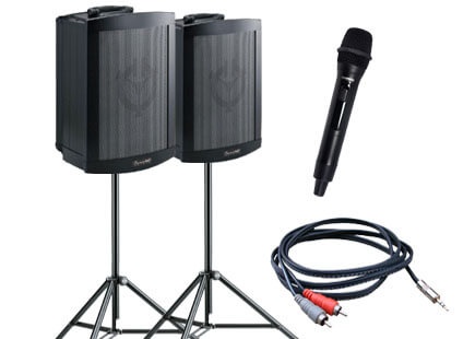 75 watt self contained speaker / amplifier system. This unit will run for 4hrs on the internal batteries,